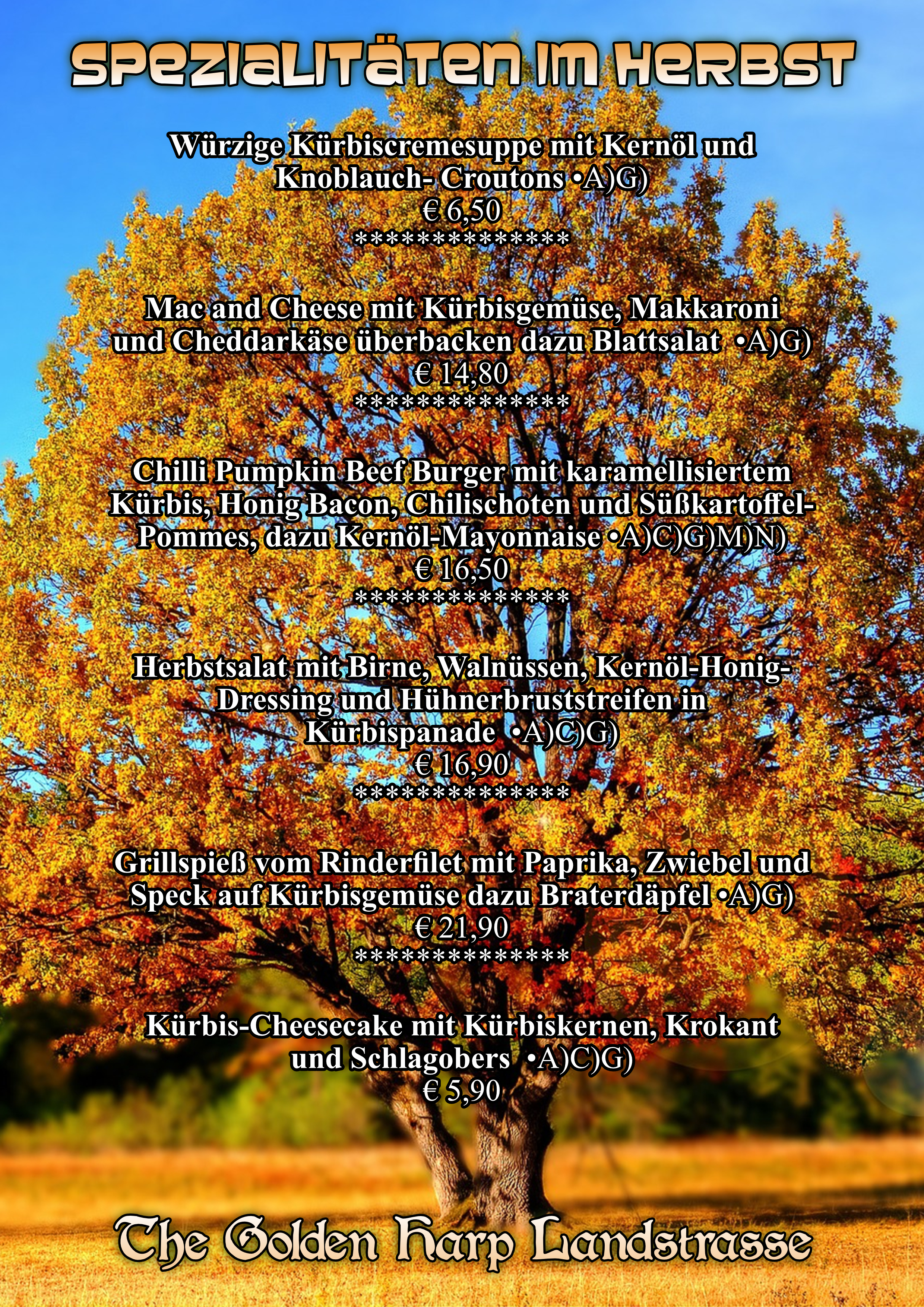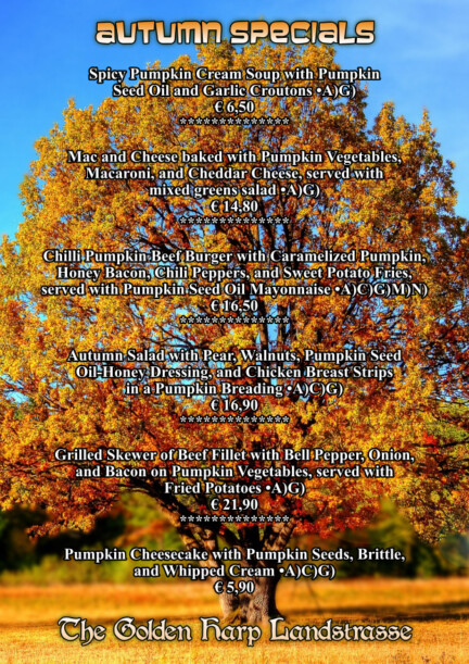 Speisen & Getränke - The Golden Harp Irish Pub Coffeehouse Restaurant Live Stage Landstraße Wien