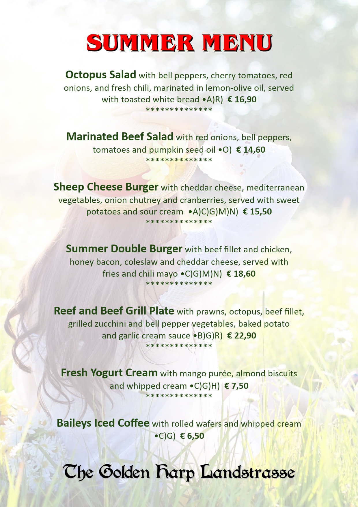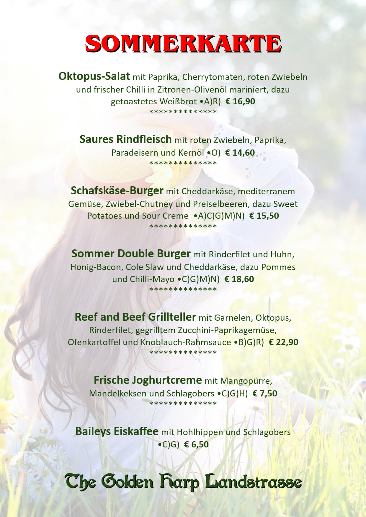 Speisen & Getränke - The Golden Harp Irish Pub Coffeehouse Restaurant Live Stage Landstraße Wien